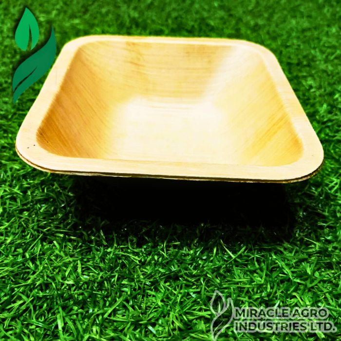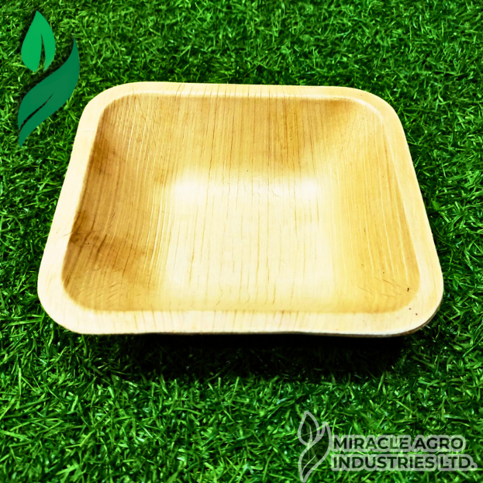 ชามใบปาล์มธรรมชาติแบบใช้แล้วทิ้ง ขนาด 6.5 นิ้ว ทรงสี่เหลี่ยม สำหรับเก็บอาหารแห้ง อายุการเก็บรักษา 1 ปี ผลิตภัณฑ์จาก Miracle Agro บังกลาเทศ