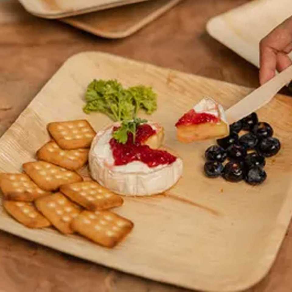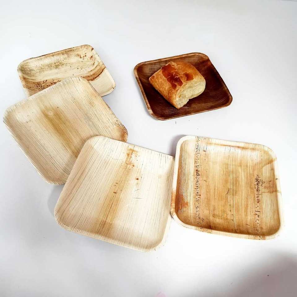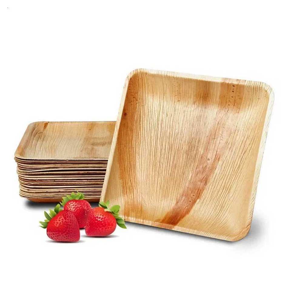 แผ่นใบปาล์มอาเรกาจากธรรมชาติแผ่นสี่เหลี่ยมลึกสำหรับงานปาร์ตี้และจัดเลี้ยง