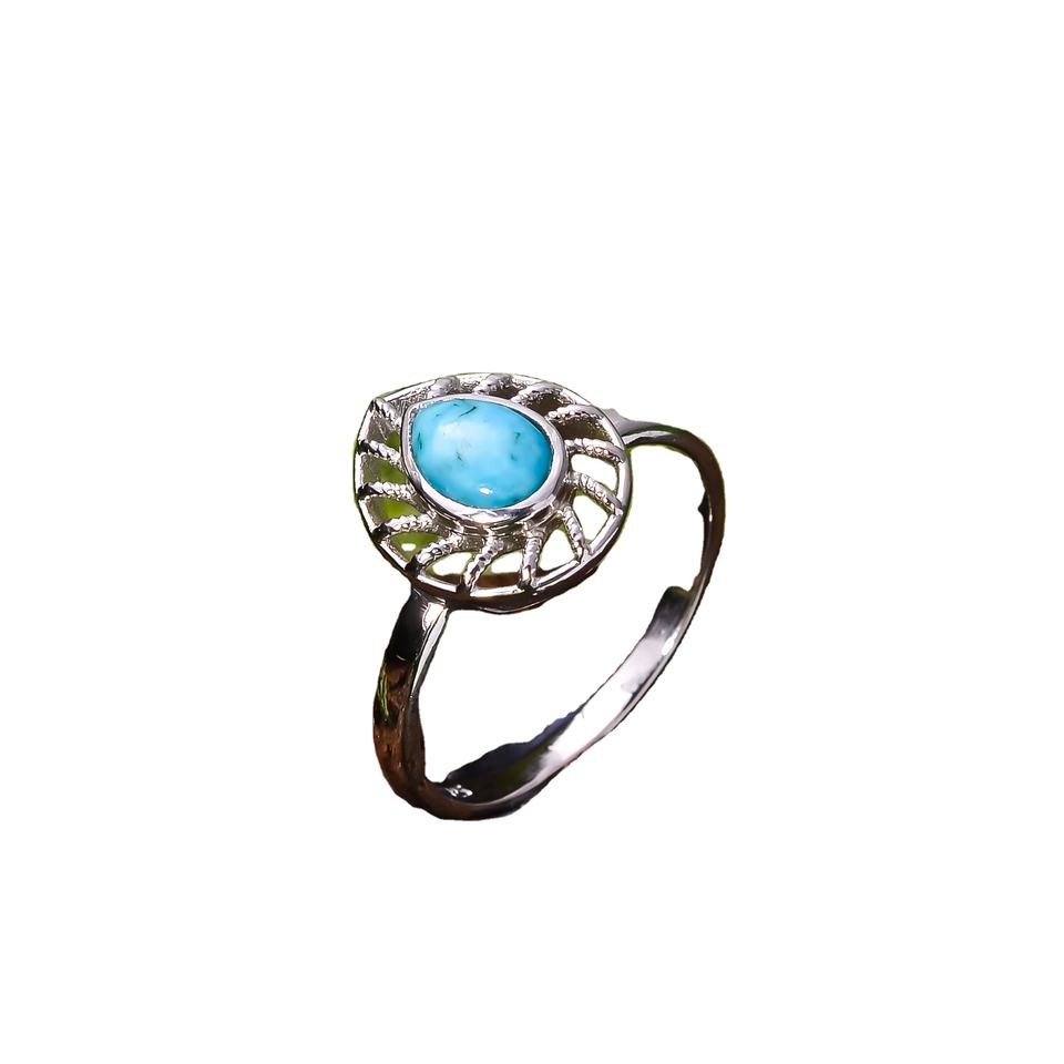 แหวนเงินสเตอร์ลิง92.5สีเทอร์ควอยซ์อาริโซน่าธรรมชาติอัญมณีรูปร่างลูกแพร์2.4กรัมดีไซน์เรียบง่ายล่าสุด
