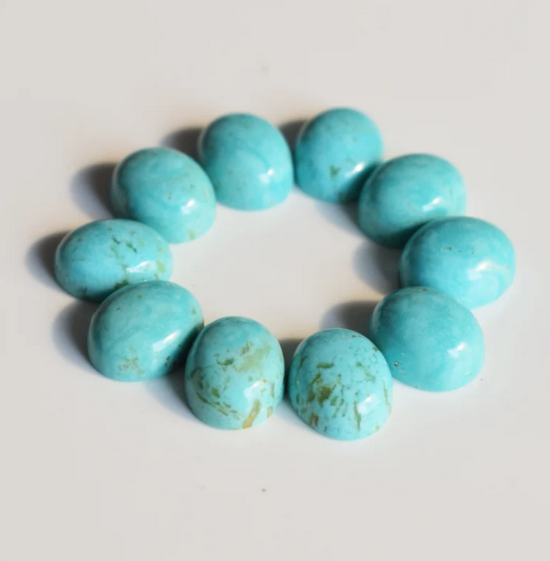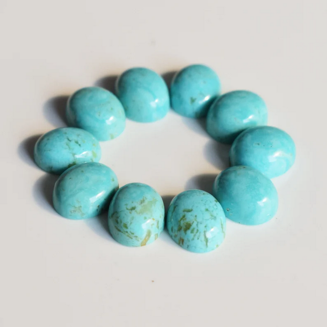 พลอยอะริโซนาสีเทอร์ควอยส์รูปไข่ทรงรีหลังแบนสำหรับทำเครื่องประดับสร้อยข้อมือสร้อยคอ Kingman สีเขียวขุ่น