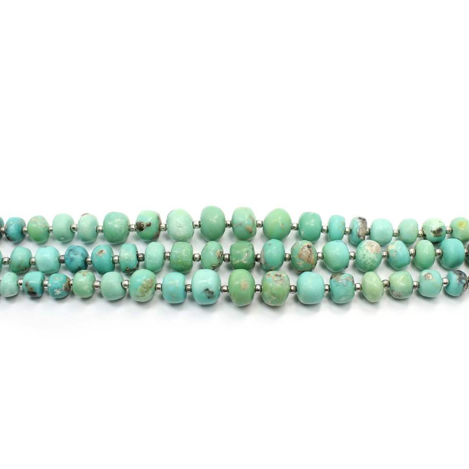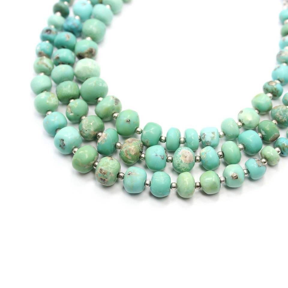 ลูกปัดสีเทอร์ควอยส์ Arizona ธรรมชาติขนาด8นิ้วพลอยรูปทรงกลมเรียบสีเงินสำหรับทำเครื่องประดับ