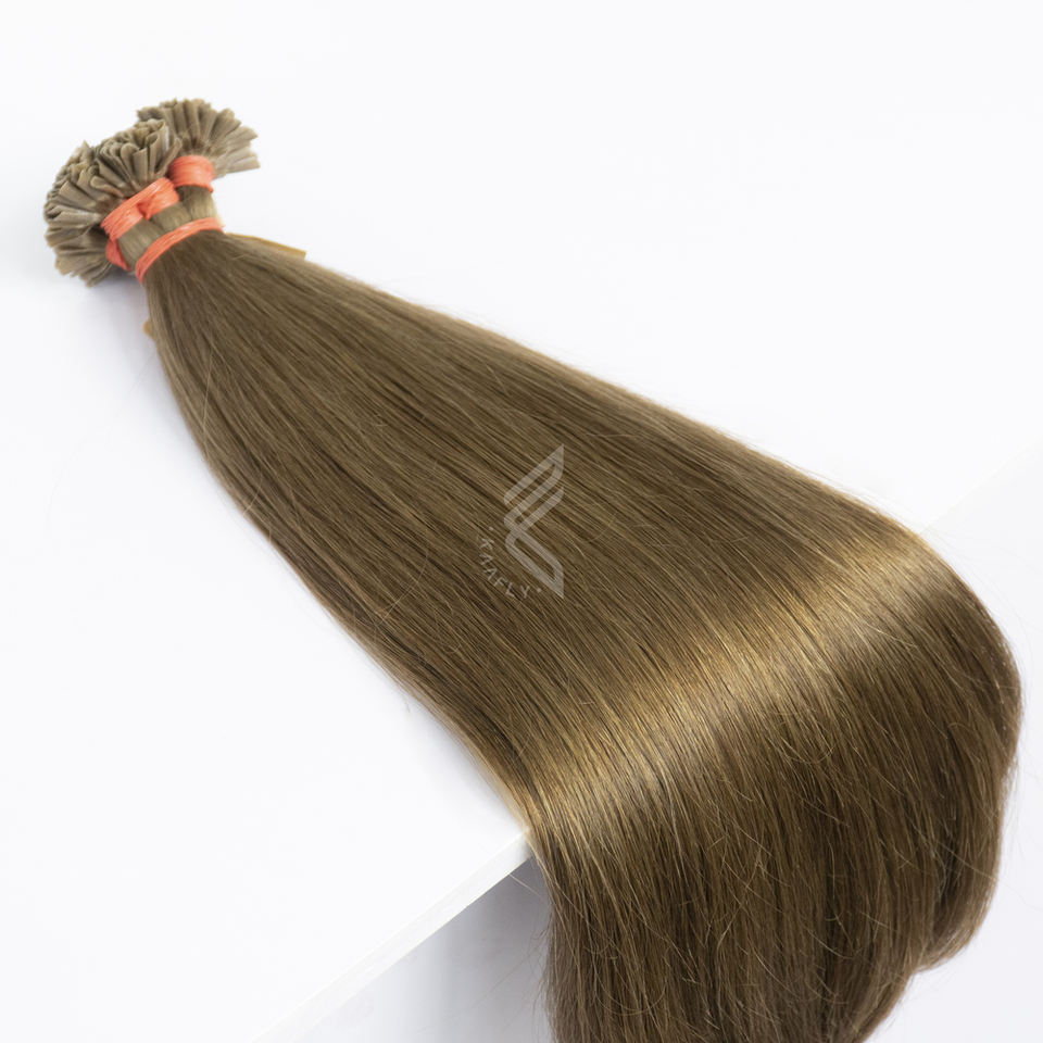 ผมต่อแบบ U-Tip สีน้ำตาลธรรมชาติจากยุโรป เกรดเวอร์จิ้น เรมี จัดเรียงเกล็ดผม ย้อมสีฟูมิ ผมมนุษย์แท้แบบนุ่มเป็นมัด