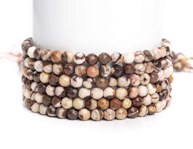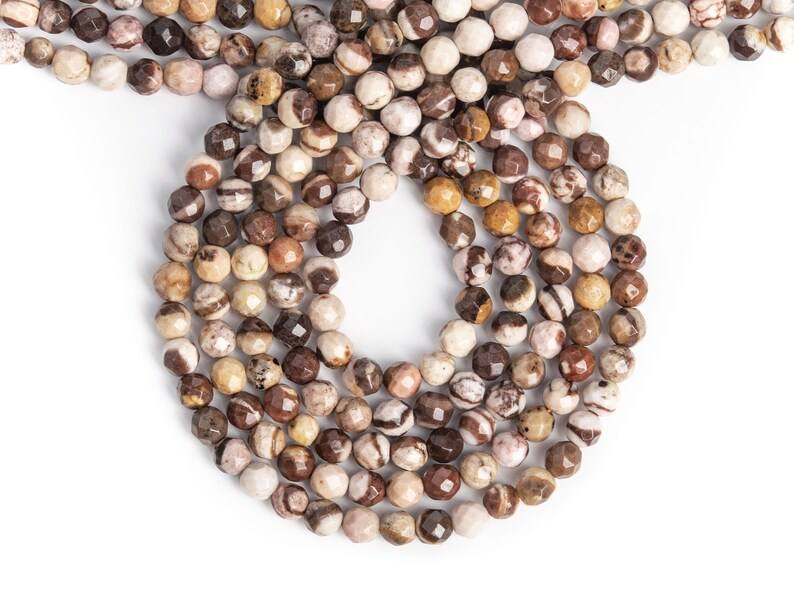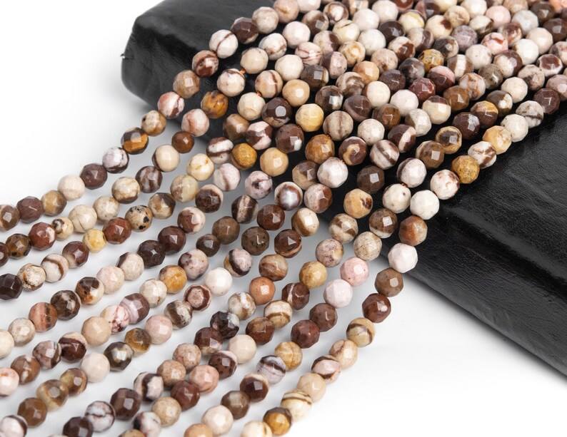 ลูกปัดหินแจสเปอร์ลายม้าลายธรรมชาติจากออสเตรเลีย ทรงกลมเหลี่ยมเพชรพลอย สำหรับทำเครื่องประดับ สร้อยข้อมือ สร้อยคอ DIY