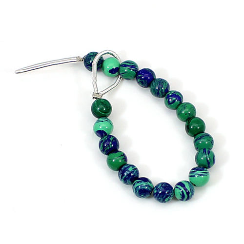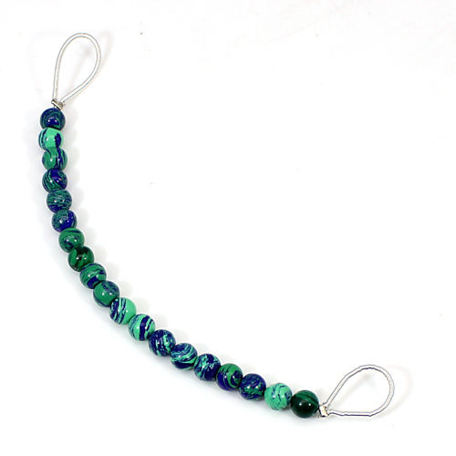 อะซูไรต์ มาลาไคต์ธรรมชาติ ทรงกลมขนาด 3.10 นิ้ว คาโบชอง 5 มม. น้ำหนัก 13.45 กะรัต ร้อยเป็นเส้นสำหรับทำเครื่องประดับ