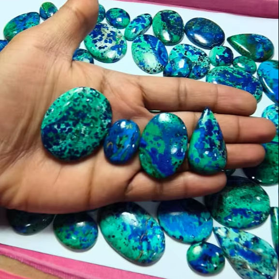 พลอยอะซูไรต์มาลาไคต์ธรรมชาติทรงหลังเบี้ยสำหรับทำเครื่องประดับ แหล่งกำเนิดคองโก 500 กรัม ขนาดต่างๆ