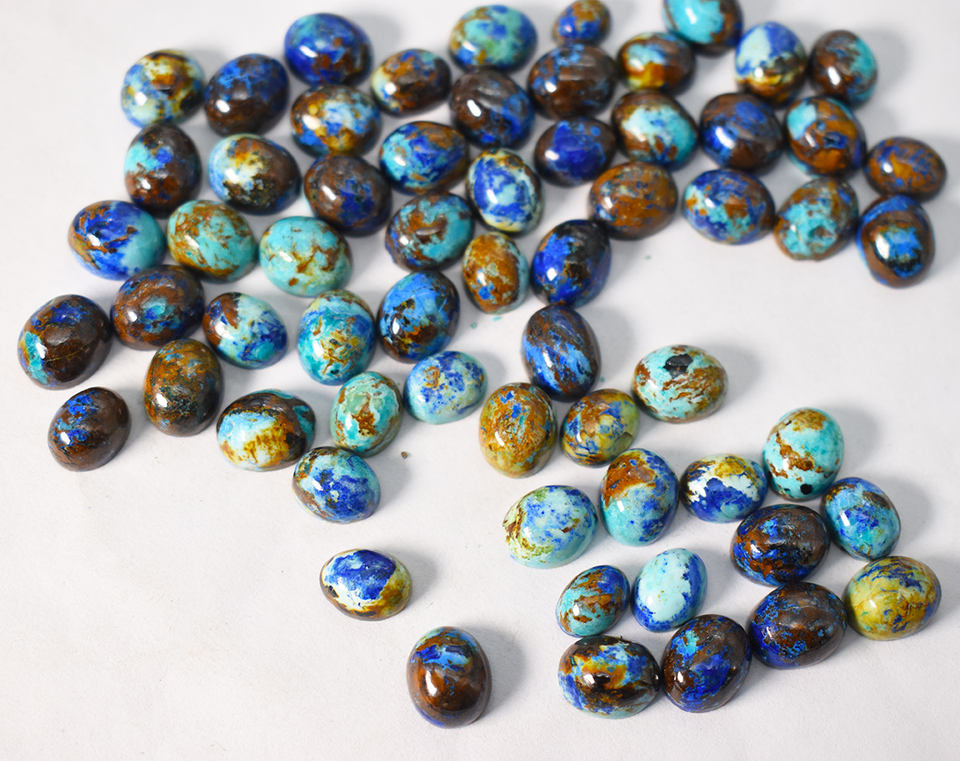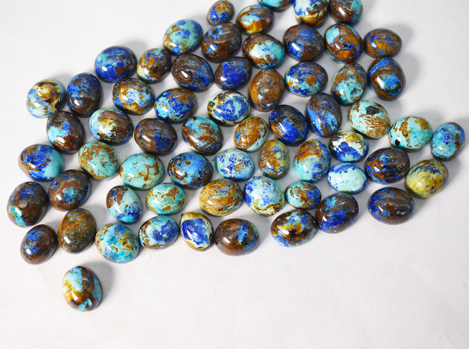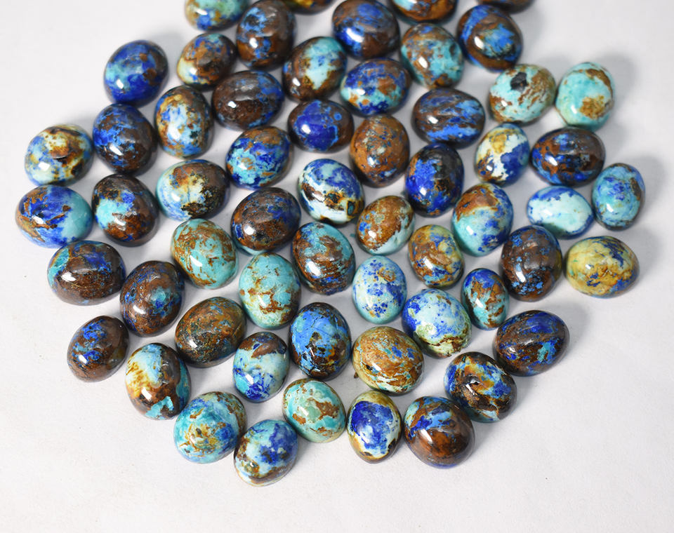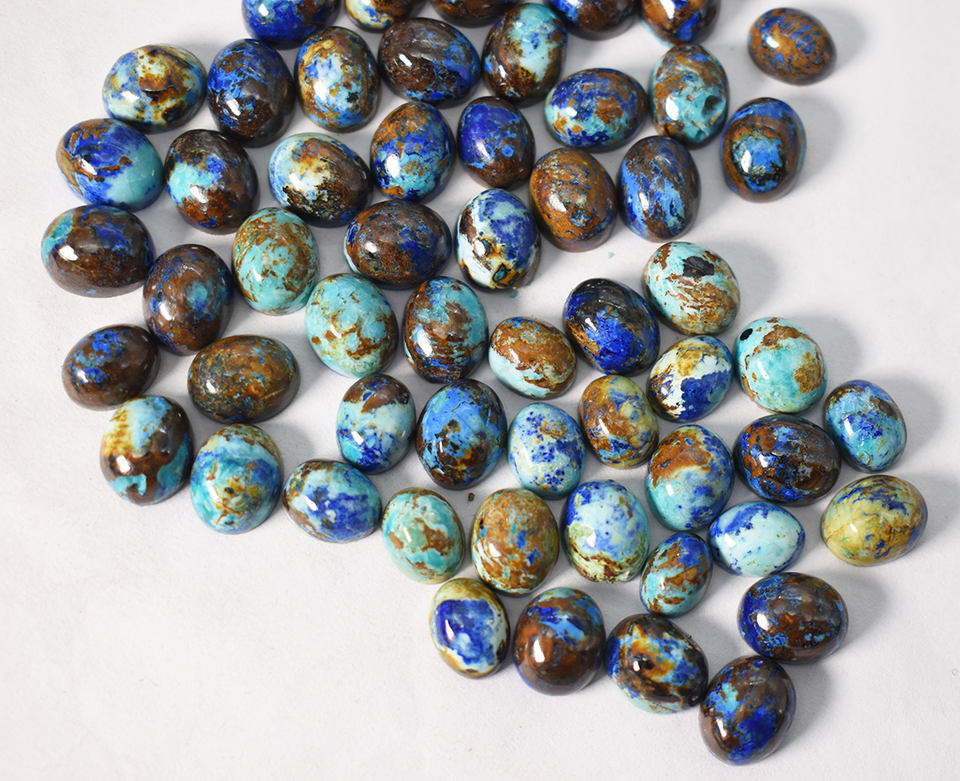 อะซูไรต์ มาลาไคต์ รูปไข่ แบบหลังแบน ขนาด 9x7 มม. ปรับขนาดแล้ว สำหรับทำเครื่องประดับ