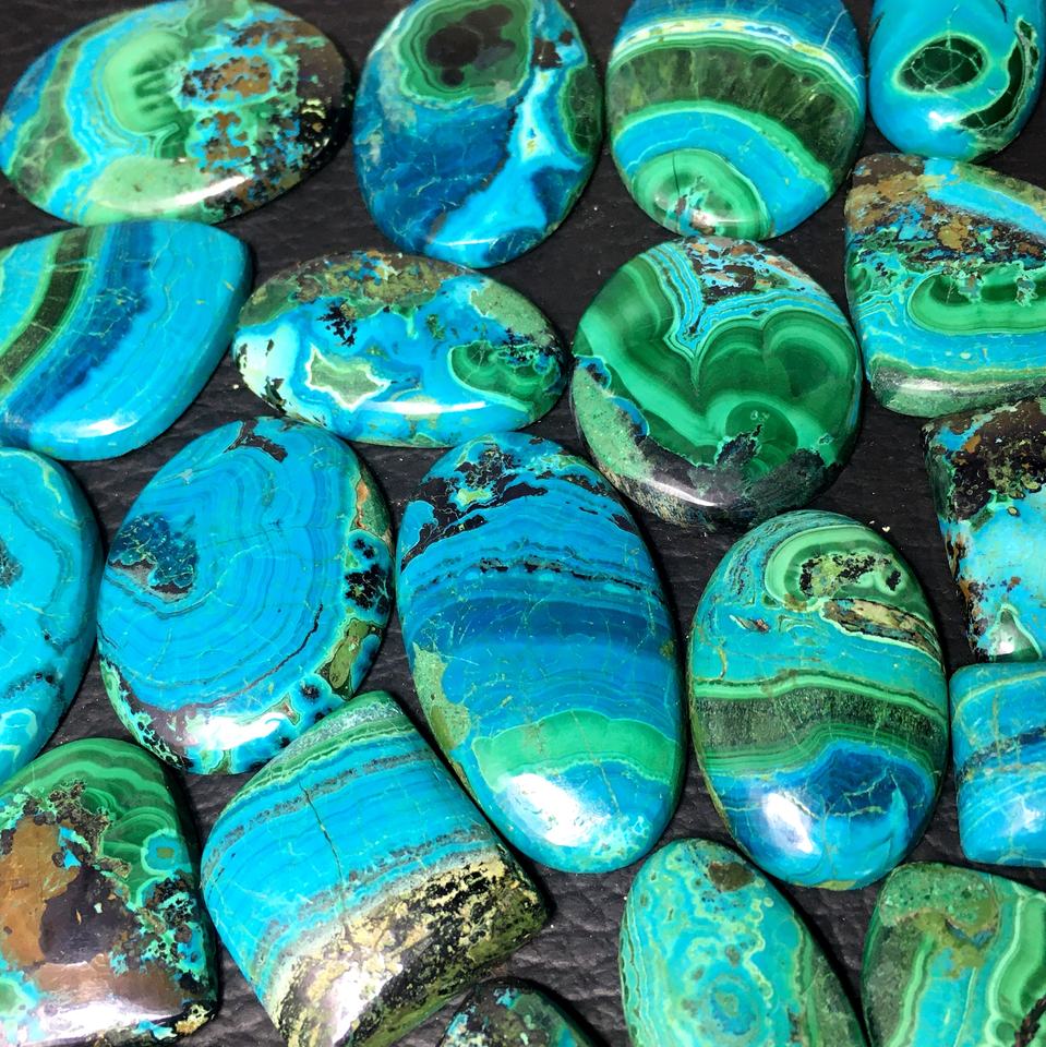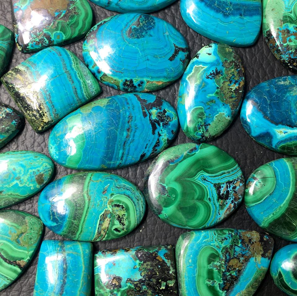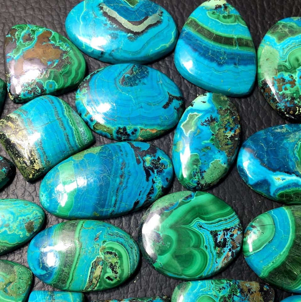 หิน Azurite Malachite ธรรมชาติแบบเหลี่ยม,เครื่องประดับทำจากอัญมณีทรงหลวม Cabochon ทำจี้/แหวน