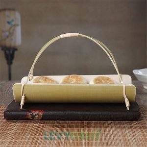 ถาดเสิร์ฟอาหารแบบใช้แล้วทิ้งทำจากไม้ไผ่ธรรมชาติแบ่งครึ่งจานซูชิทรงสี่เหลี่ยมสำหรับร้านอาหาร