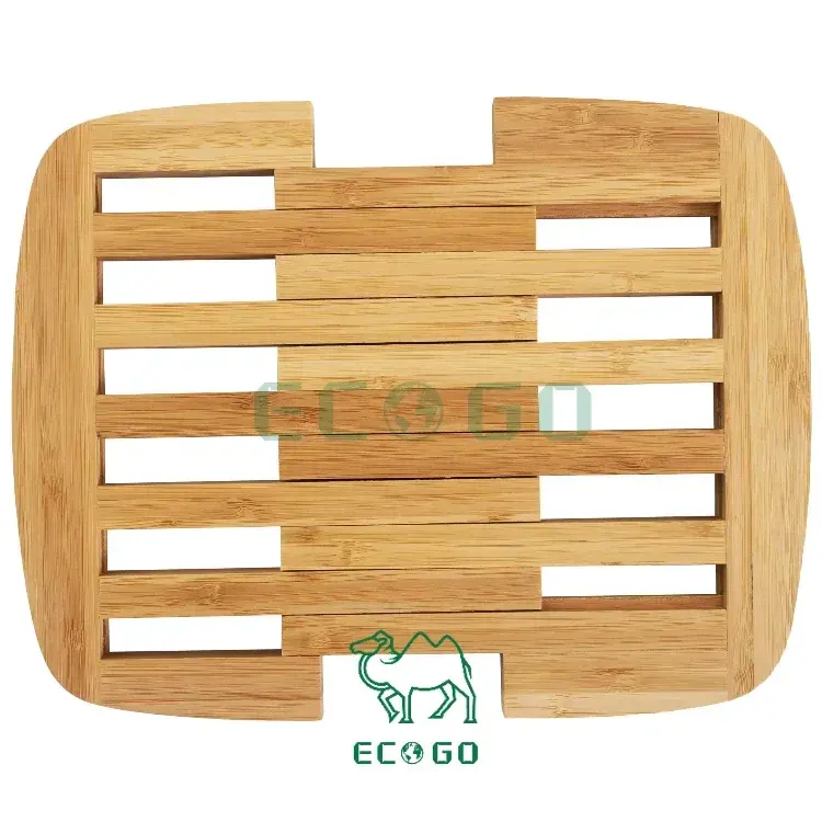 แผ่นรองจานไม้ไผ่ธรรมชาติแบบขยายได้แผ่นรองแก้วไม้ไผ่แผ่นรองของร้อนขาตั้งสามขาสำหรับอาหารจานร้อนชามกาน้ำชาเครื่องดื่ม