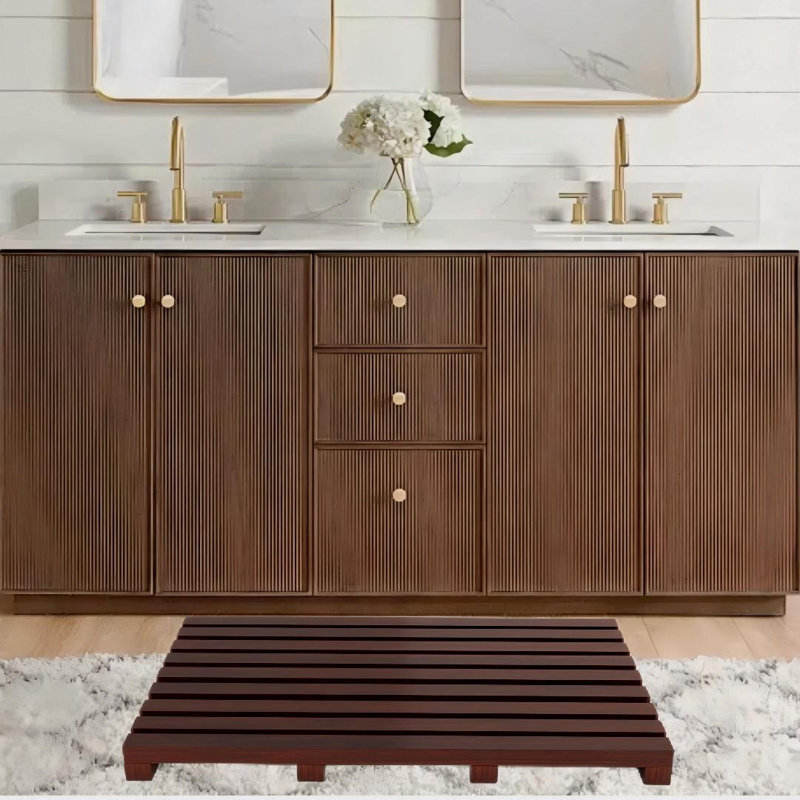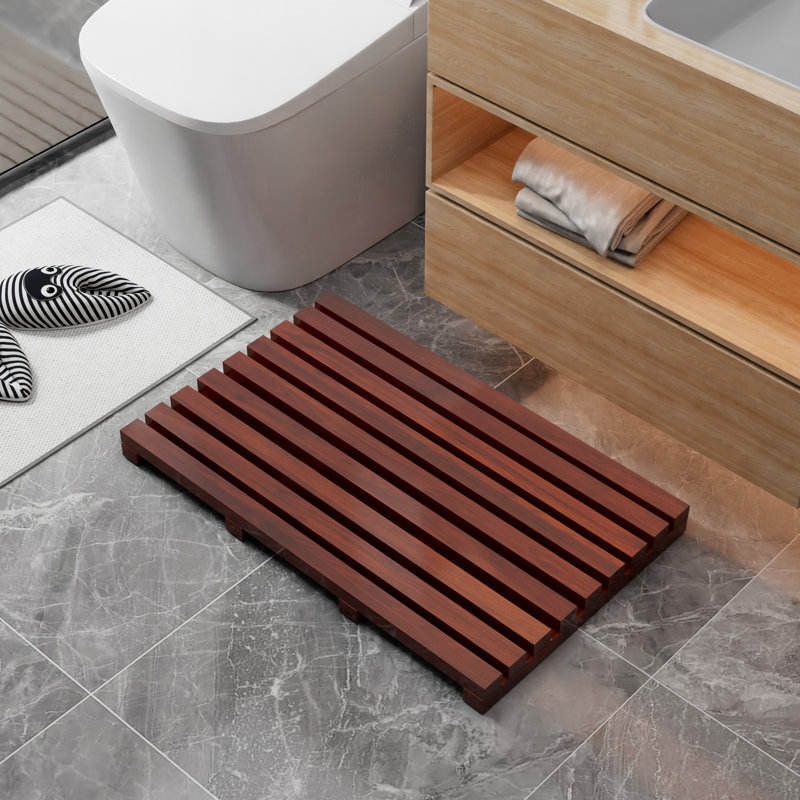 เสื่ออาบน้ำไม้ไผ่ธรรมชาติกันน้ำกันลื่นแห้งเร็วซักได้และพรมไม้นุ่มสำหรับใช้ในห้องน้ำลวดลายทึบ