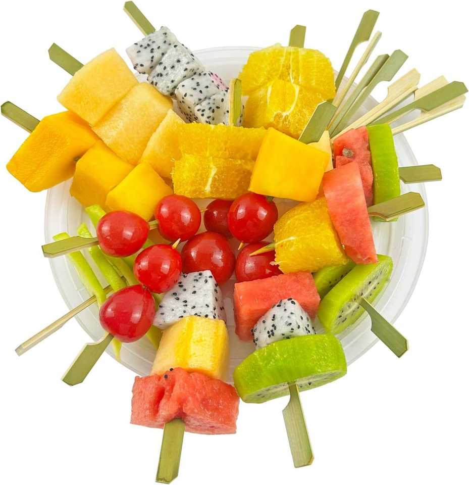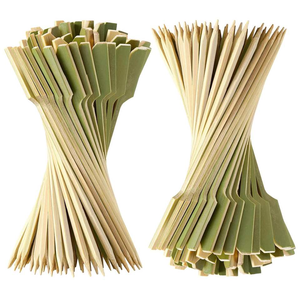 ไม้เสียบอาหารทำจากไม้ไผ่ธรรมชาติ สีเขียว สำหรับอาหารเรียกน้ำย่อย เครื่องดื่ม ผลไม้ บาร์บีคิว ของว่าง และอุปกรณ์เสริมสำหรับชาร์กูเตอรี