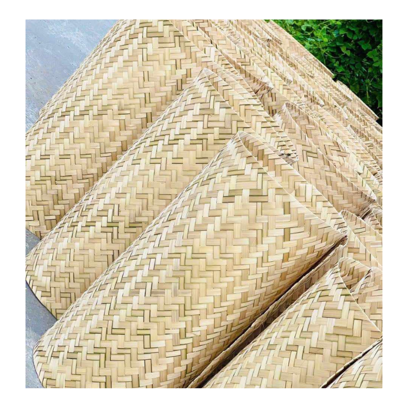 แผ่นผ้าใยไผ่ธรรมชาติสำหรับตกแต่งผนังและเพดาน งานฝีมือ DIY เป็นมิตรกับสิ่งแวดล้อม ลายก้างปลาไล่เฉดสี ทอมืออย่างมีสไตล์