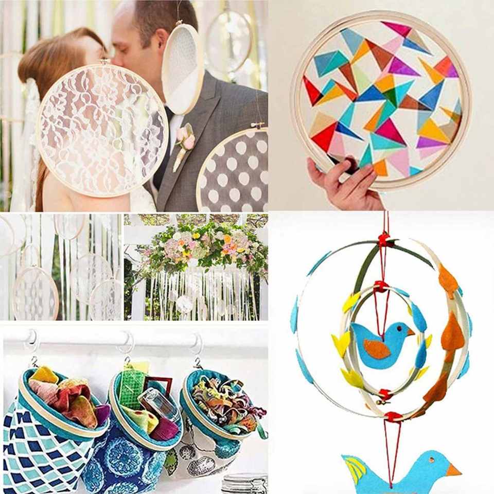พัดไม้ไผ่ธรรมชาติสำหรับงานฝีมือ DIY วงแหวนปักผ้าทำมือ วงแหวนปักครอสติชพลาสติกแบบรักษ์โลกสำหรับคริสต์มาส