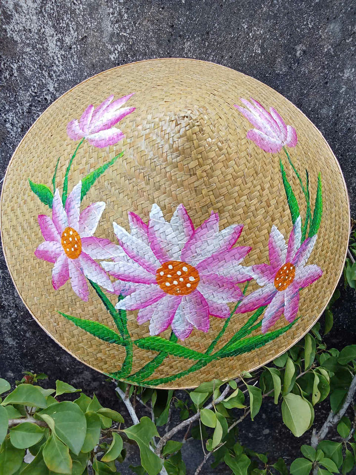 หมวกทรงกรวยทำจากไม้ไผ่ธรรมชาติและใบปาล์ม โครงสร้างน้ำหนักเบา เหมาะสำหรับกิจกรรมกลางแจ้งและการแสดงวัฒนธรรม