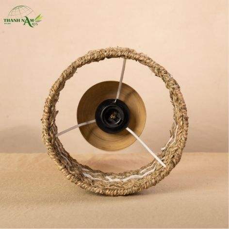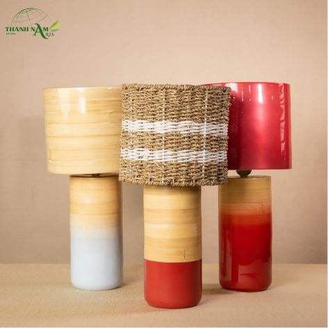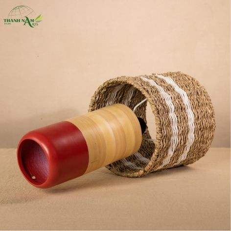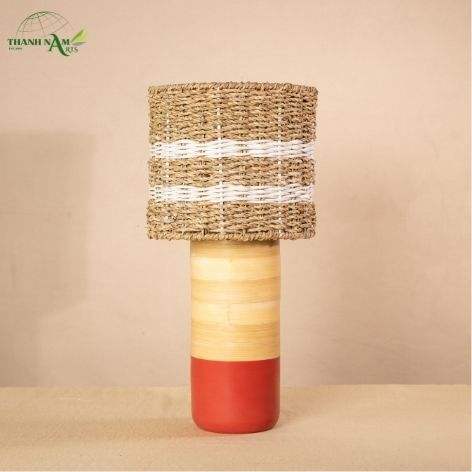 โคมไฟตั้งโต๊ะทำมือสไตล์มินิมอลทันสมัยจากไม้ไผ่ธรรมชาติและหญ้าทะเล พร้อมฝาครอบโคมไฟและฐานเคลือบเงา