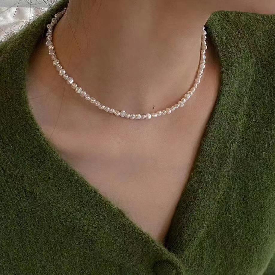 สร้อยคอมุกน้ำจืดทรงบาร็อคธรรมชาติ สร้อยคอระดับไฮเอนด์ ดีไซน์เก๋ โด่งดังในโลกออนไลน์