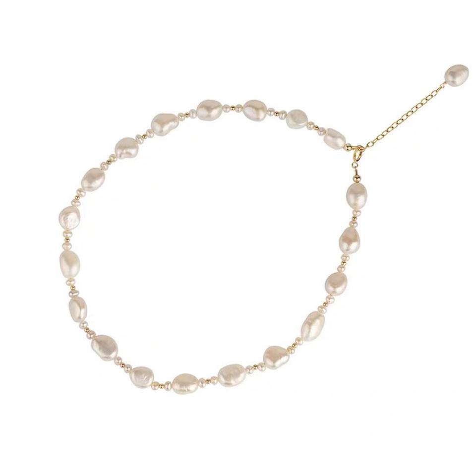 สร้อยคอมุกน้ำจืดทรงบาร็อคธรรมชาติ พร้อมสร้อยคอชุบทอง 14K สไตล์ฝรั่งเศส ดีไซน์เก๋ไก๋