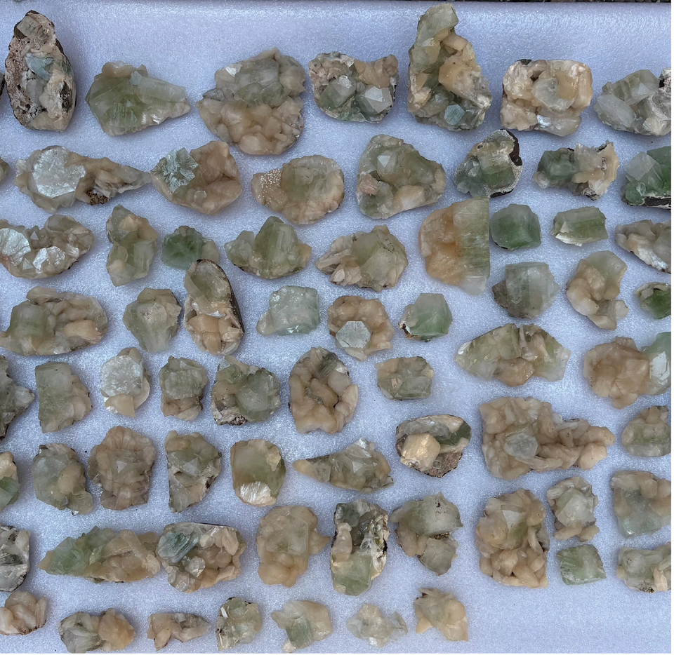 อะโพฟิลไลต์สีเขียวธรรมชาติสวยงาม พร้อมสติลบิทและเฮอแลนไดต์ ชุดแร่ธาตุพรีเมียม ตัวอย่างคริสตัลสำหรับตกแต่ง ชุดของขวัญ