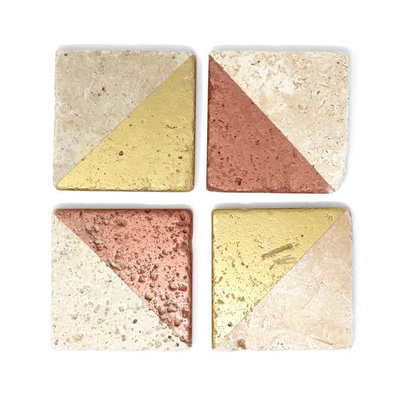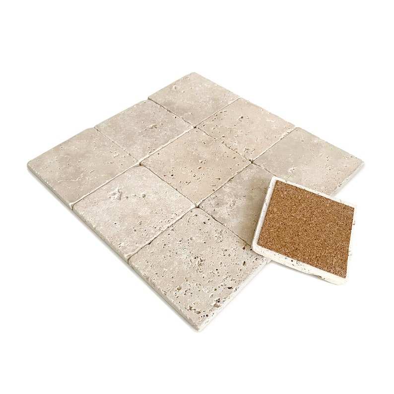 แผ่นรองแก้วหินอ่อนสีเบจธรรมชาติ ขนาด 4x4 นิ้ว ขัดเงา ดูดซับน้ำได้ แต่ละชิ้นมีลวดลายเฉพาะตัว