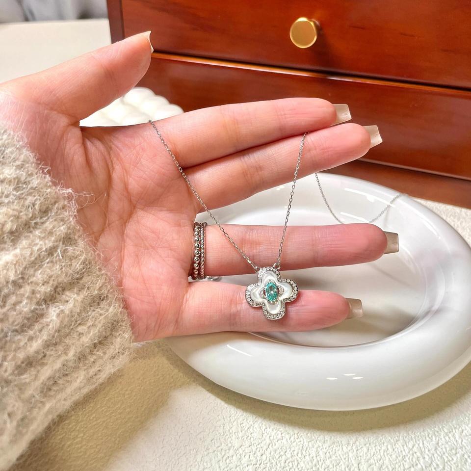 สร้อยคอเปลือกหอยรูปไข่เงินแท้ S925 สีธรรมชาติ ดีไซน์เรียบง่าย สร้อยคอแฟชั่น