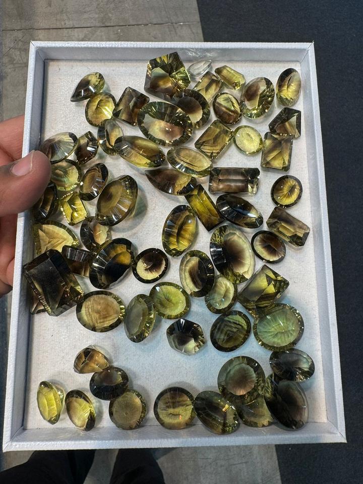 พลอยควอตซ์เลมอนธรรมชาติ ทรงรีเลเซอร์พิเศษ ขนาดอิสระ ทรงเหลี่ยมเจียระไน พร้อมการเปลี่ยนสี 500 กะรัต