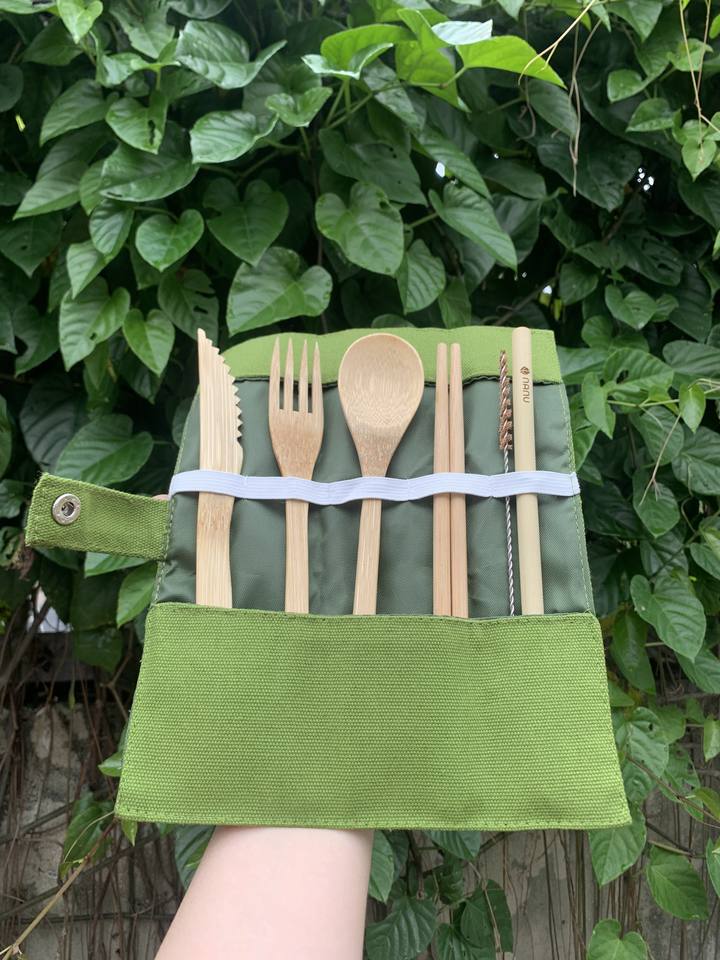 ชุดมีดไม้ไผ่ย่อยสลายได้ตามธรรมชาติชุดช้อนส้อมแปรงฟางสำหรับเดินทางชุดมีดไม้ไผ่ออกแบบโลโก้ได้ตามต้องการโดย Eco2go ประเทศเวียดนาม