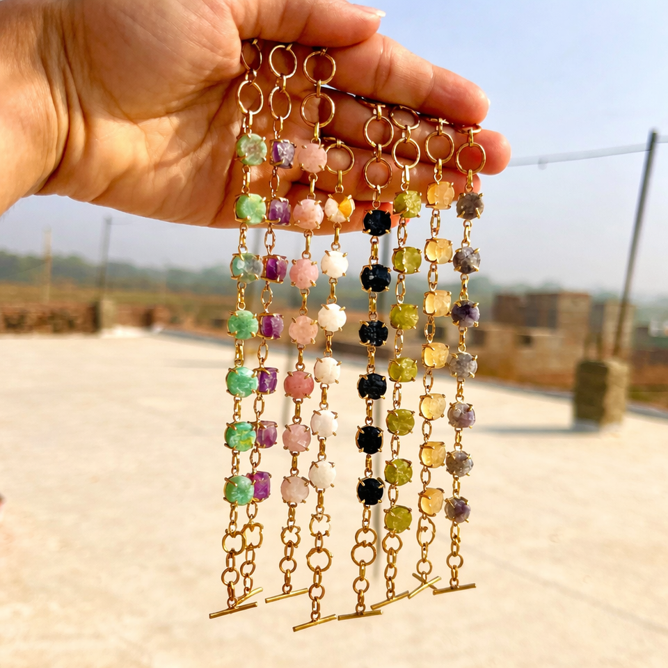 กำไลข้อมือคริสตัลหินดิบธรรมชาติ ชุบทอง ทำมือ เครื่องประดับอัญมณีดิบสำหรับผู้หญิง