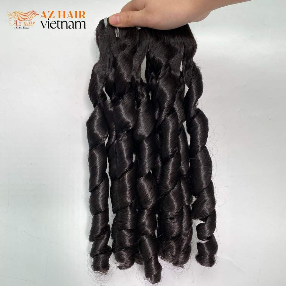 Funmi ผมธรรมชาติสีดำ # 1B เป็นลอนหยิกเป็นมัดผมมนุษย์ชาวเวียดนาม
