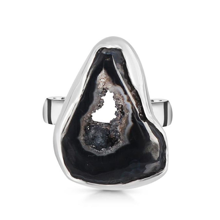 925อาเกตสีดำธรรมชาติเครื่องประดับแหวนเงินสเตอร์ลิง