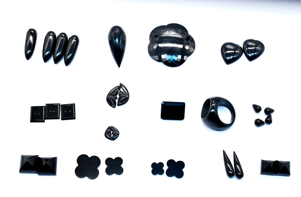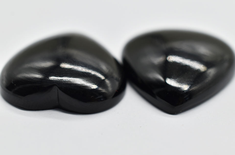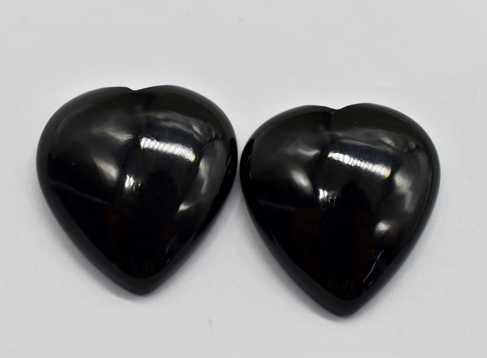 พลอยออนิกซ์สีดำธรรมชาติ คู่ขนาดประมาณ 15x11x8 มม. รูปหัวใจแบบคาโบชอง พลอยอะเกตสีดำแบบหลวมสำหรับทำต่างหู