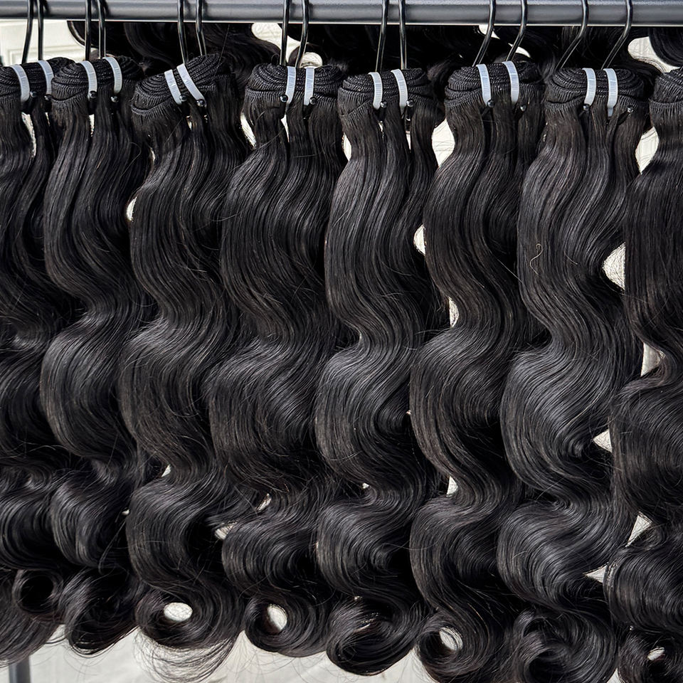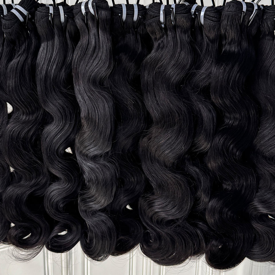 ผมต่อแบบลอนธรรมชาติสีดำ ผมแท้เนื้อนุ่ม แบบเย็บสองชั้น หนาแน่น สำหรับร้านเสริมสวยและผู้จำหน่ายผม