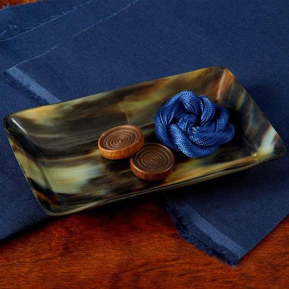ถาดเสิร์ฟและเก็บของตกแต่งทรงกลมทำมือจากเขาควายและเขาวัวแท้ สีดำน้ำตาลธรรมชาติ เป็นมิตรกับสิ่งแวดล้อม จาก HF Industries