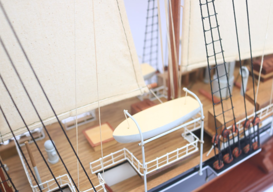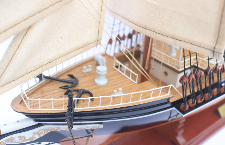 โมเดลเรือสูงทนทานแบบธรรมชาติสีดำทำจากไม้ทาสีด้วยมือตกแต่งทางทะเลงานฝีมือเรซิ่นสีน้ำเงินเข้มกล่องซีดาร์ทำจากเวียดนามที่บ้าน