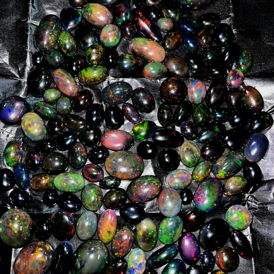 โอปอลเอธิโอเปียสีดำธรรมชาติรูปทรงผสม Cabochon พลอยธรรมดาจำนวนมากทำเครื่องประดับ