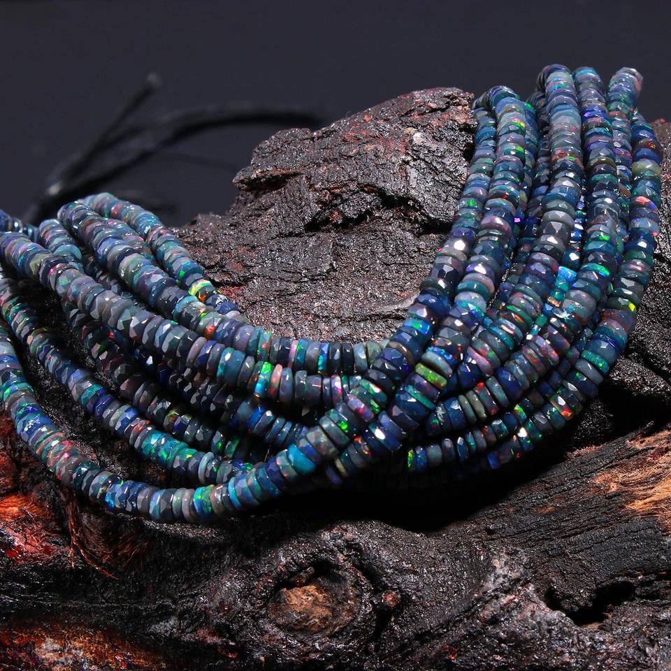 ลูกปัดเอธิโอเปียสีดำธรรมชาติ เกรด Opla AAA รูปทรงเฮชิแบบเหลี่ยม ขนาด 3.5-6.5 มม. ความยาว 13 นิ้ว สำหรับทำเครื่องประดับ ลูกปัดแฟชั่น