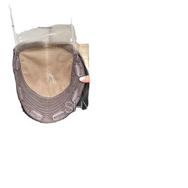 ฐานผ้าไหมสำหรับผู้หญิง10-26นิ้วสีดำธรรมชาติสไตล์ยุโรปด้านซ้ายกลาง