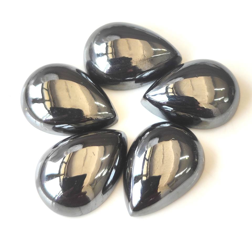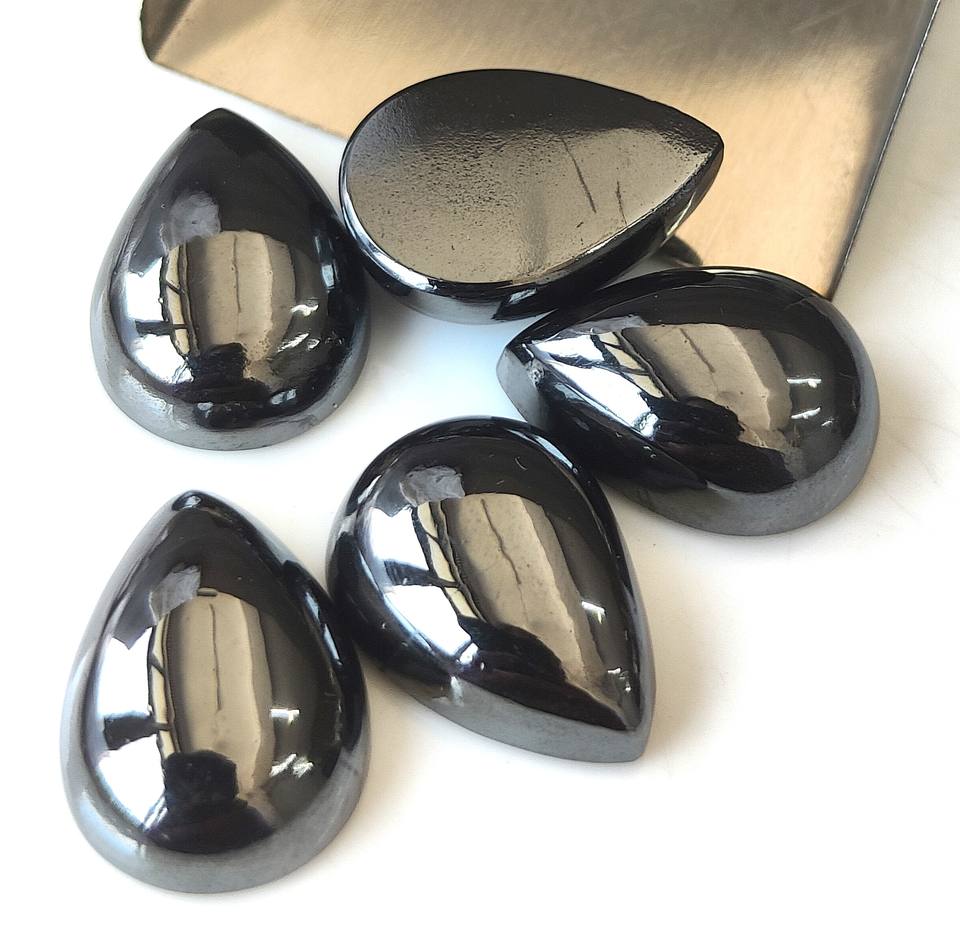 เฮมาไทต์สีดำธรรมชาติ 3x5มม.-20x30 มม. รูปทรงลูกแพร์ คาโบชอง หลังแบน พลอยหลวม มีสีเปลี่ยนแปลง เหมาะสำหรับทำเครื่องประดับ ราคาขายส่ง