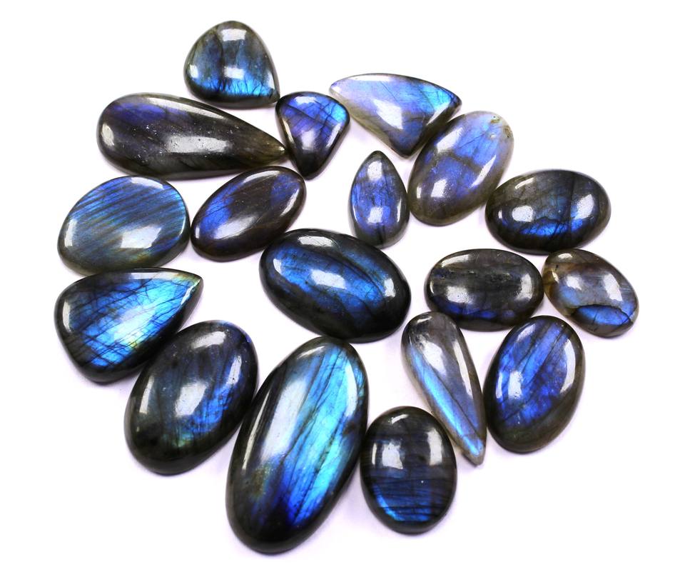 พลอยลาบราโดไรต์สีดำธรรมชาติ รูปทรงคาโบชอง ขนาดอิสระ สำหรับทำเครื่องประดับ ยี่ห้อ TASBIYA GEMS ให้สีสันสวยงาม