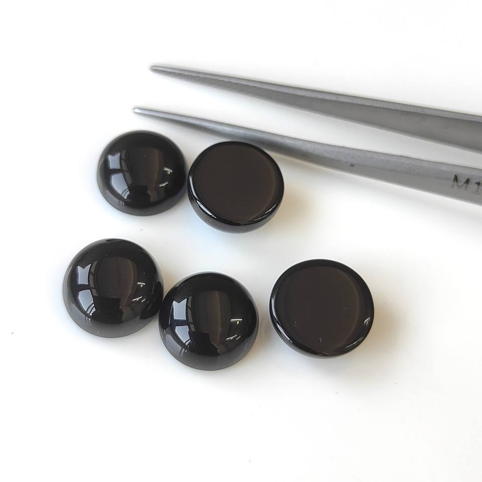 พลอยโมราสีดำธรรมชาติทรงหลังเบี้ยทรงกลมขนาด4มม. สีดำทรงหลวม
