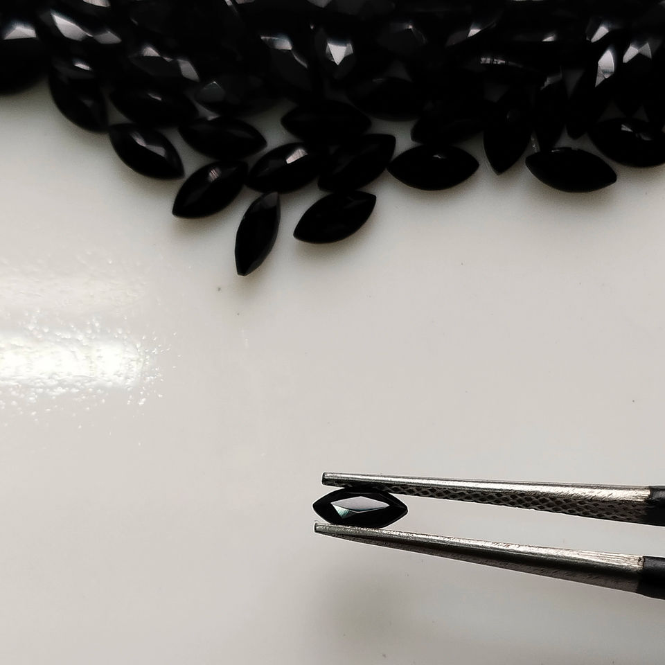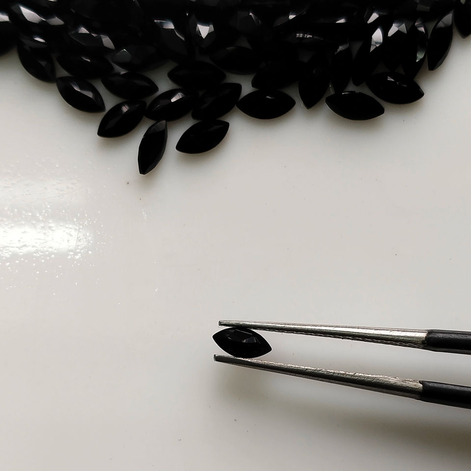 พลอยออนิกซ์สีดำธรรมชาติ 6x3 มม. ทรงมาร์ควิส คุณภาพดีที่สุด สำหรับทำเครื่องประดับ ได้รับการรับรองจากเรด เมาน์เท่น เจมส์