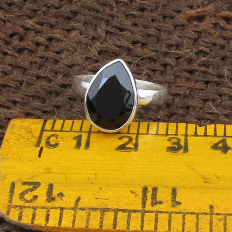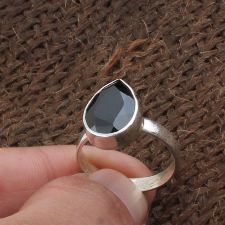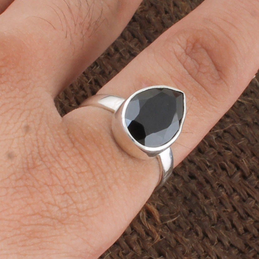 แหวนเงินแท้ 925 ประดับพลอยออนิกซ์สีดำธรรมชาติ ทำมือ หินแคริบเบียน สำหรับผู้หญิง แหวนสีดำมินิมอล ขายส่ง