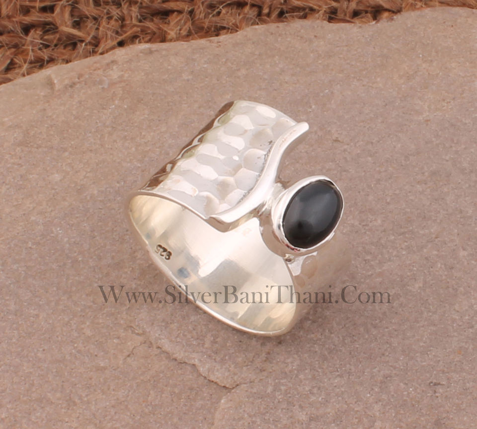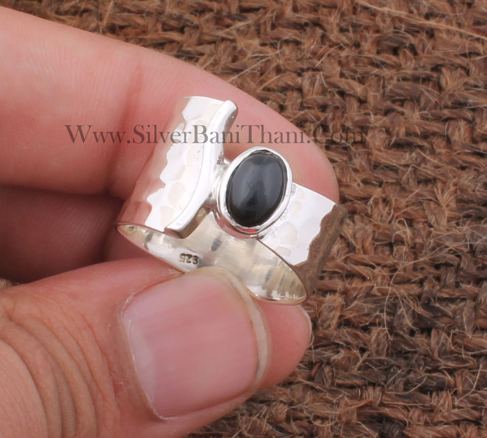 แหวนแต่งงานคลาสสิกหินออนิกซ์สีดำธรรมชาติ เงินแท้ 925 ดีไซน์มินิมอลประดับอัญมณีลายจุดสไตล์วินเทจสำหรับผู้ชายและผู้หญิง