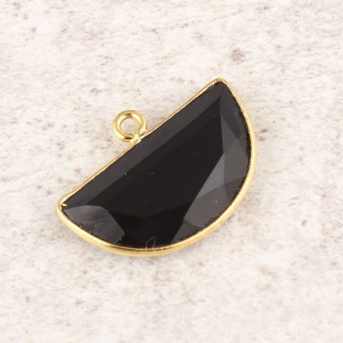 ขั้วต่อขอบโอนิกซ์สีดำธรรมชาติรูปตัว D จี้ห่วงเดี่ยวแบบเหลี่ยมเพชรพลอยเครื่องประดับทำจากทองเหลือง