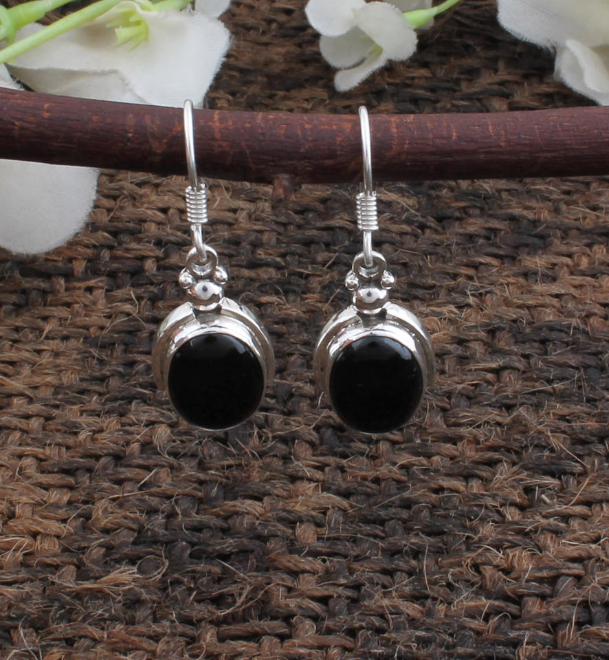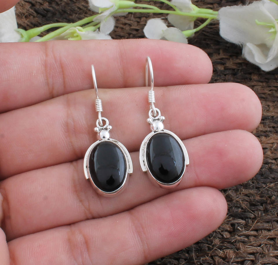 ต่างหูออนิกซ์สีดำธรรมชาติ เงินแท้ 925 ต่างหูแบบห้อยสไตล์วินเทจ พลอยรูปไข่แท้ งานวิคตอเรียนสุดหรู สำหรับงานแต่งงานและงานปาร์ตี้