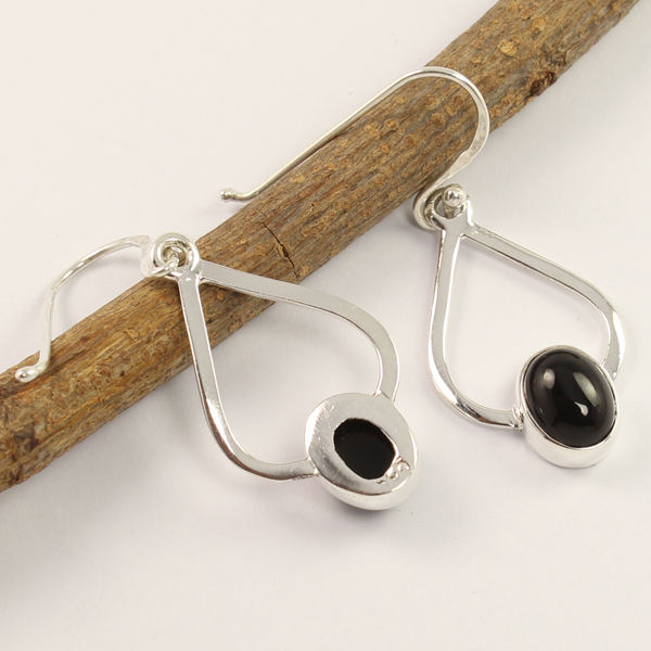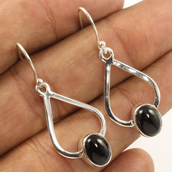 ต่างหูโอนิกซ์สีดำธรรมชาติ925ต่างหูเงินสเตอร์ลิงต่างหูลวดต่างหูเครื่องประดับที่ดี