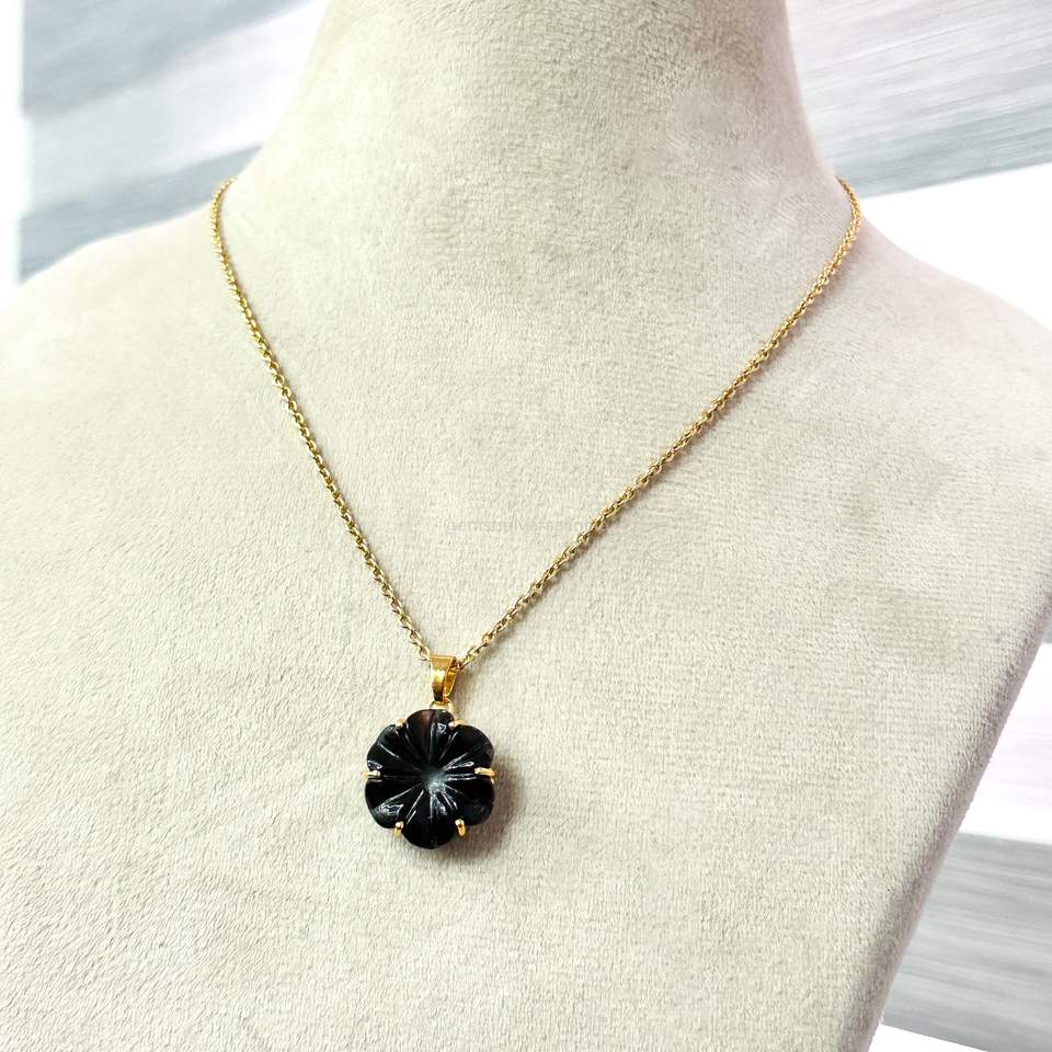 จี้ห้อยคอรูปดอกไม้ทำจากหินโอนิกซ์สีดำธรรมชาติ