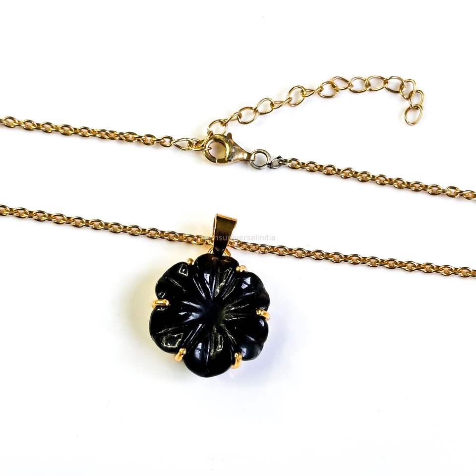 ชื่ออัญมณี:จี้ห้อยคอรูปดอกไม้ทำจากหินโอนิกซ์สีดำธรรมชาติ