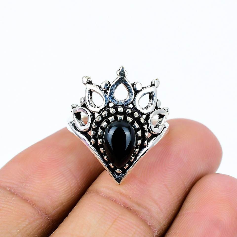 แหวนมงกุฎพลอยออนิกซ์สีดำธรรมชาติ เงินแท้ 925 สไตล์โบโฮ สำหรับทุกเพศ