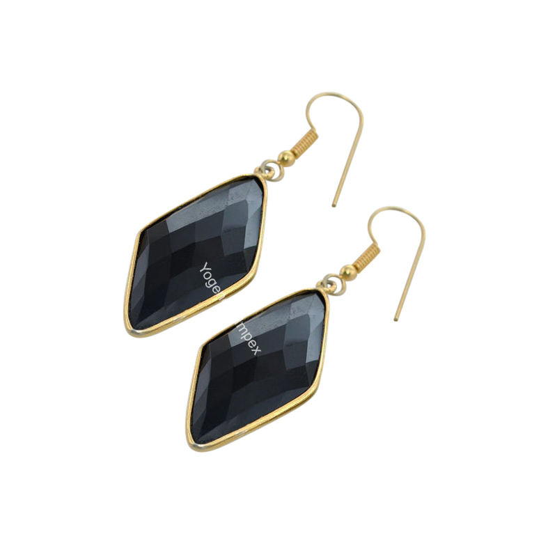 ต่างหูพลอยโอนิกซ์สีดำธรรมชาติยอดนิยมไมครอนชุบทอง925เงินสเตอร์ลิงแบบห้อยสำหรับงานปาร์ตี้และของขวัญ