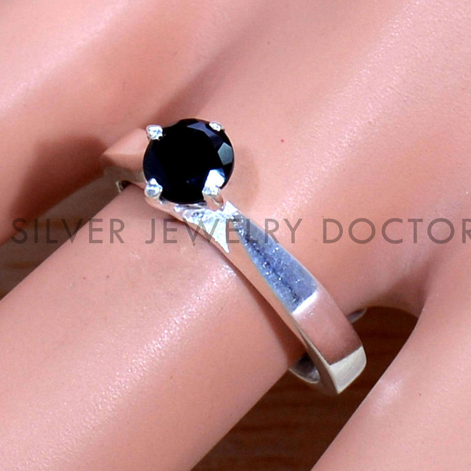 แหวนพลอยออนิกซ์สีดำธรรมชาติ แหวนเงินแท้ 925 ตัดเหลี่ยม งานแฮนด์เมด ราคาขายส่ง